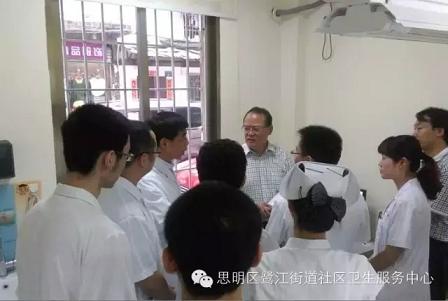 5月29日下午,鹭江街道社区的居民们收获了一份健康大礼——厦门市卫生计生委主任、厦门市糖尿病研究所所长杨叔禹亲临鹭江社区,考察了我中心“分级诊疗、“三师共管”的工作成果,以及“中医适宜技术进社区”特色诊疗服务情况,并为“糖友网”患者以及社区居民提供现场诊疗。
